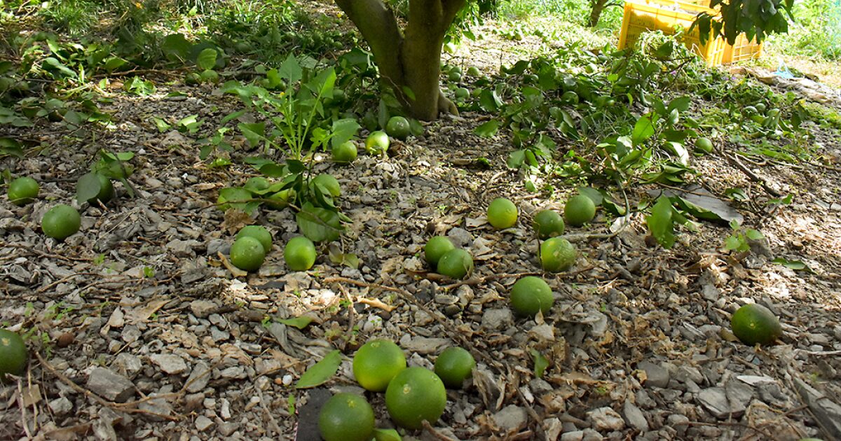 「摘果みかんでポン酢作ったら美味しいんやって」と話をしながら、ひとつひとつの実にひたすらサンテをかけていきます。手間のかかる作業ですが、果実を守るための必須作業です😊