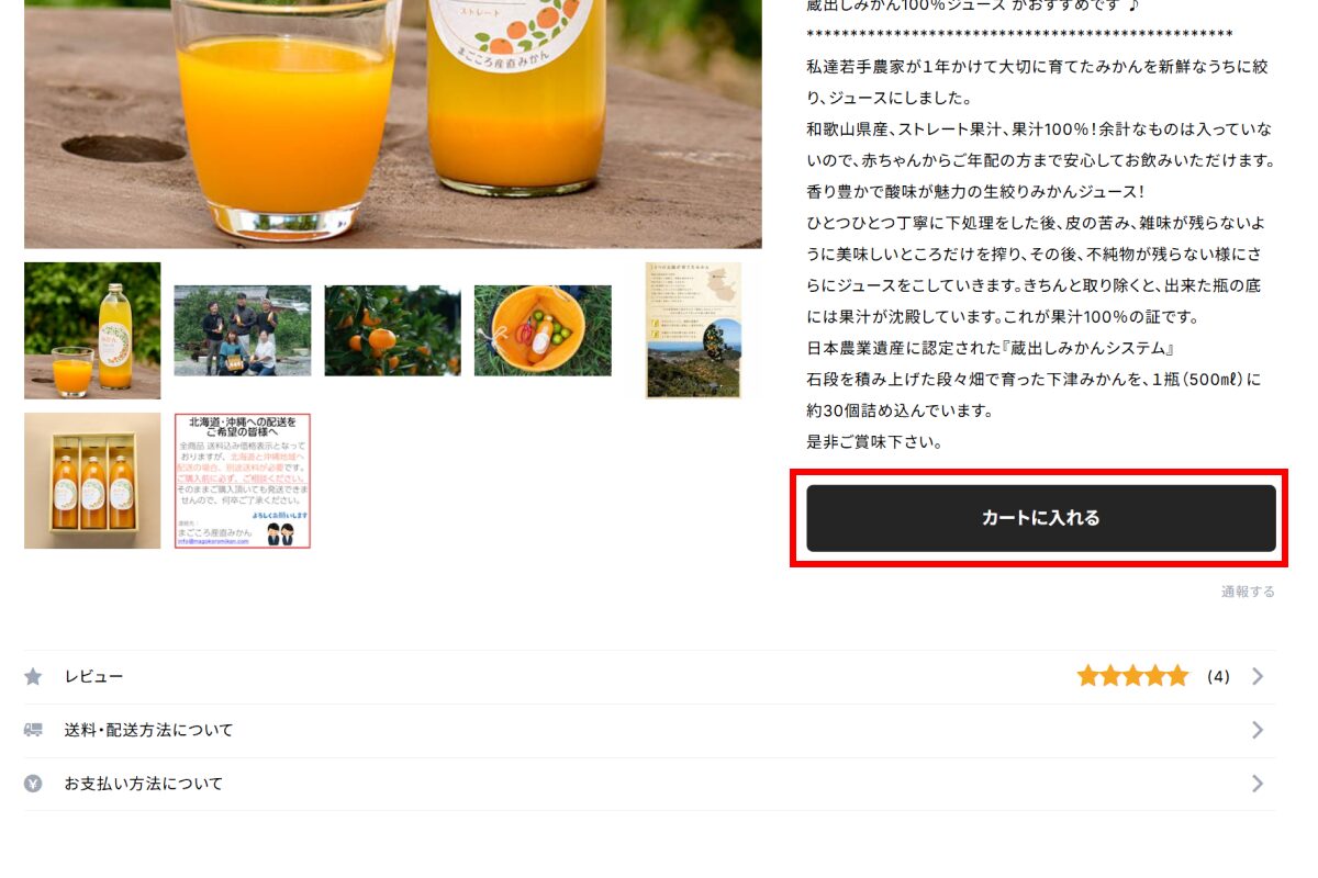 商品一覧ページから購入したい商品をクリック、遷移先の商品詳細ページで「カートに入れる」ボタンをクリックします。
