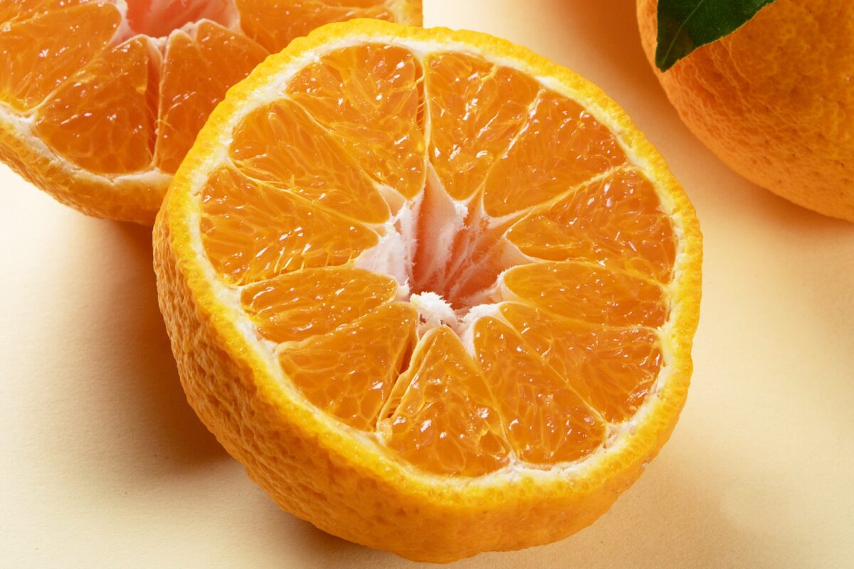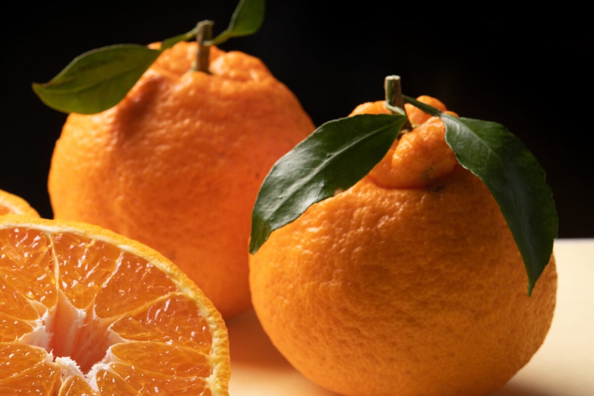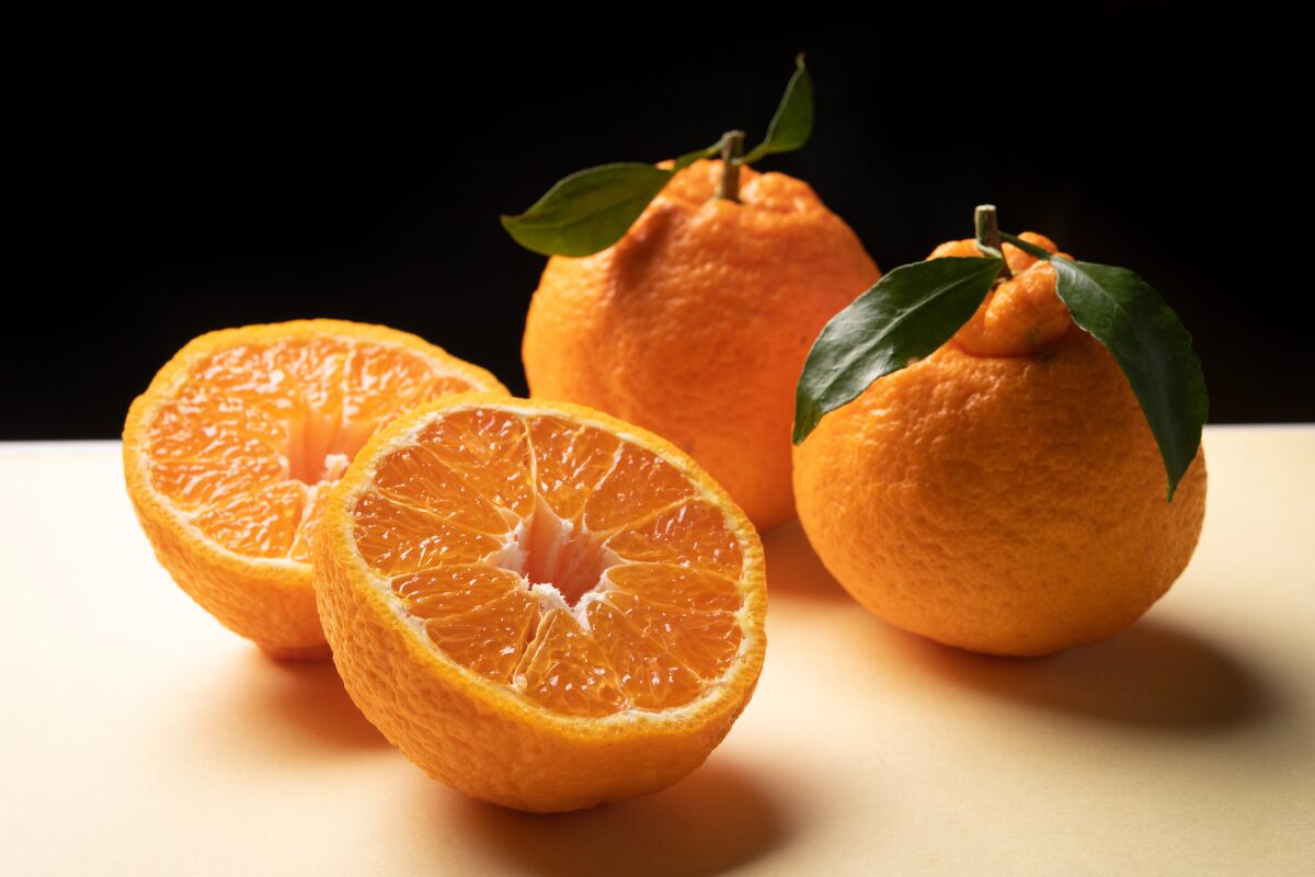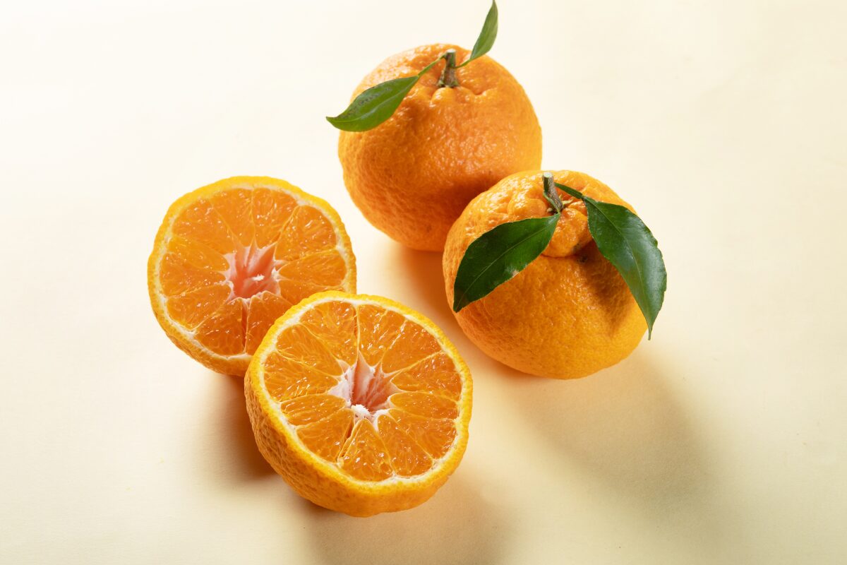 ヘタの部分が「デコ」のように盛り上がっているのが特徴で、外皮が柔らかく、手でみかんのように簡単に剥けます。